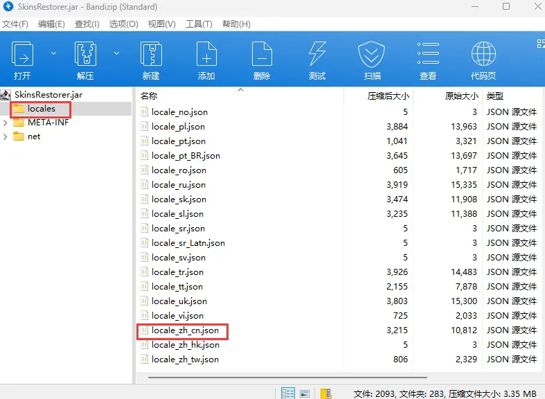 如果我们在插件文件夹找不到语言文件夹,可以直接用解压缩软件打开 jar 包: