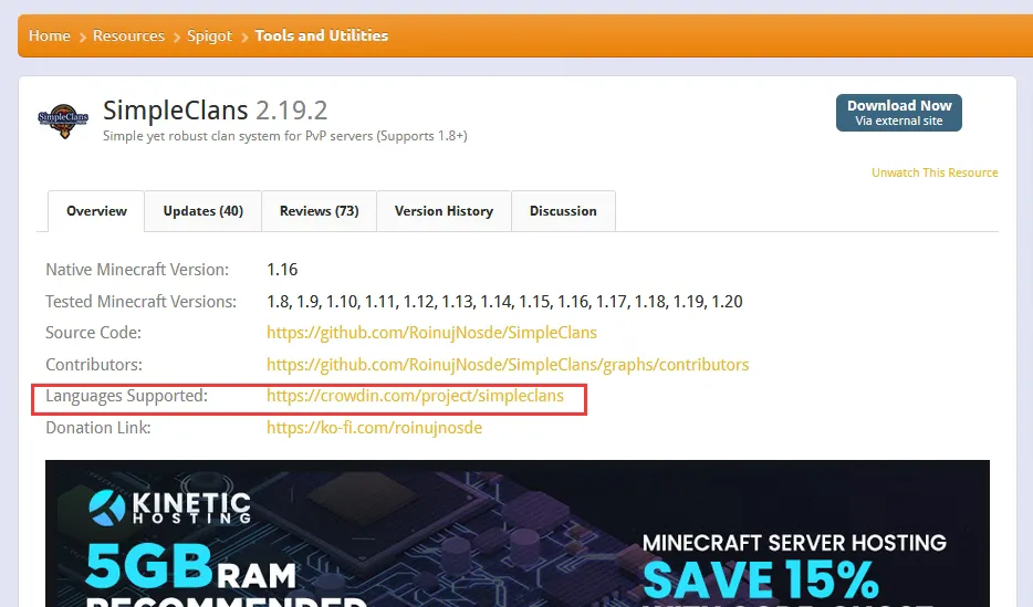 比如 https://www.spigotmc.org/resources/simpleclans.71242 我们可以看到,语言那里给了个 链接: